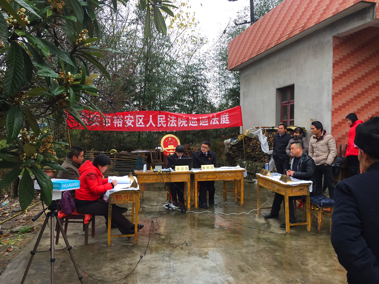 11月23日上午,六安市裕安区法院的法官冒雨来到辖区独山镇舞旗畈村一农户家,对一起房屋买卖合同纠纷案件进行巡回审理,为当地百姓上了一堂生动的法制课。同时,该院法官首次使用“便携式科技法庭系统”,对庭审进行了全程音视频录像及网上直播。