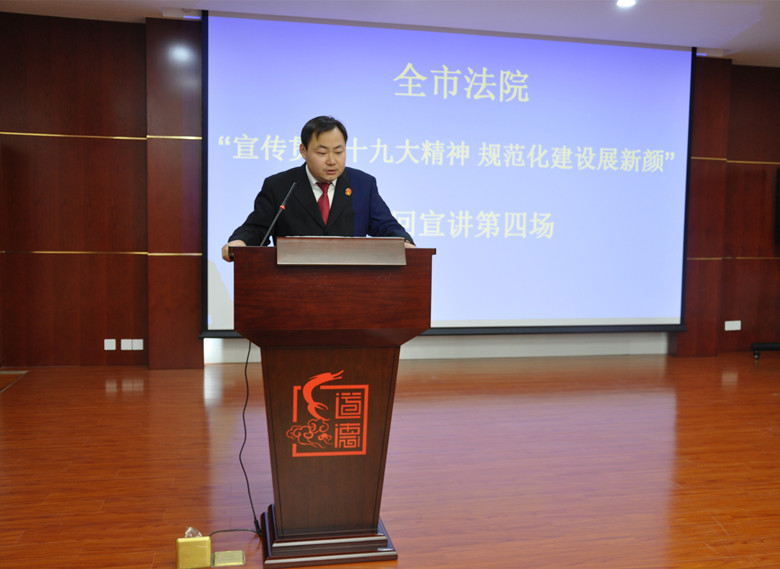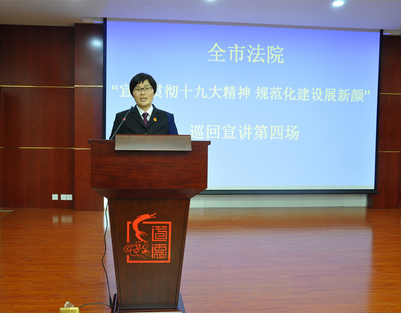 为广泛宣传贯彻党的十九大精神,深入推进“两学一做”学习教育常态化制度化,宣传在规范化建设过程中涌现出来的优秀法院干警的先进事迹,弘扬社会主义核心价值观,发挥先进典型的引领示范作用, 12月8日,全市法院“宣传贯彻十九大精神 规范化建设展新颜”巡回宣讲活动第四场在裕安区法院举行。