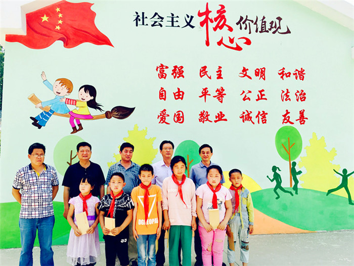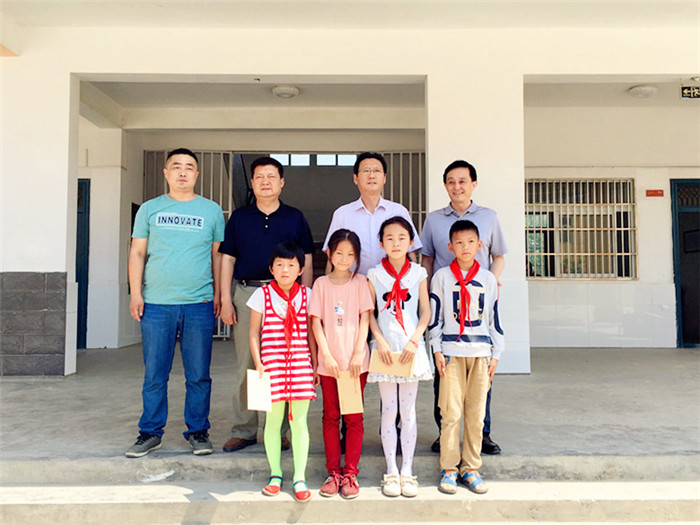 在六明村,吴昊坦一行先后前往丁集中心学校、六明小学走访慰问结对帮扶的贫困家庭儿童。看到整洁美观的校园,吴昊坦与小朋友们分享了他上学时的艰苦时光,引导小朋友要珍惜美好时光,勉励他们努力学习成才,改变家庭当前的贫困状况。